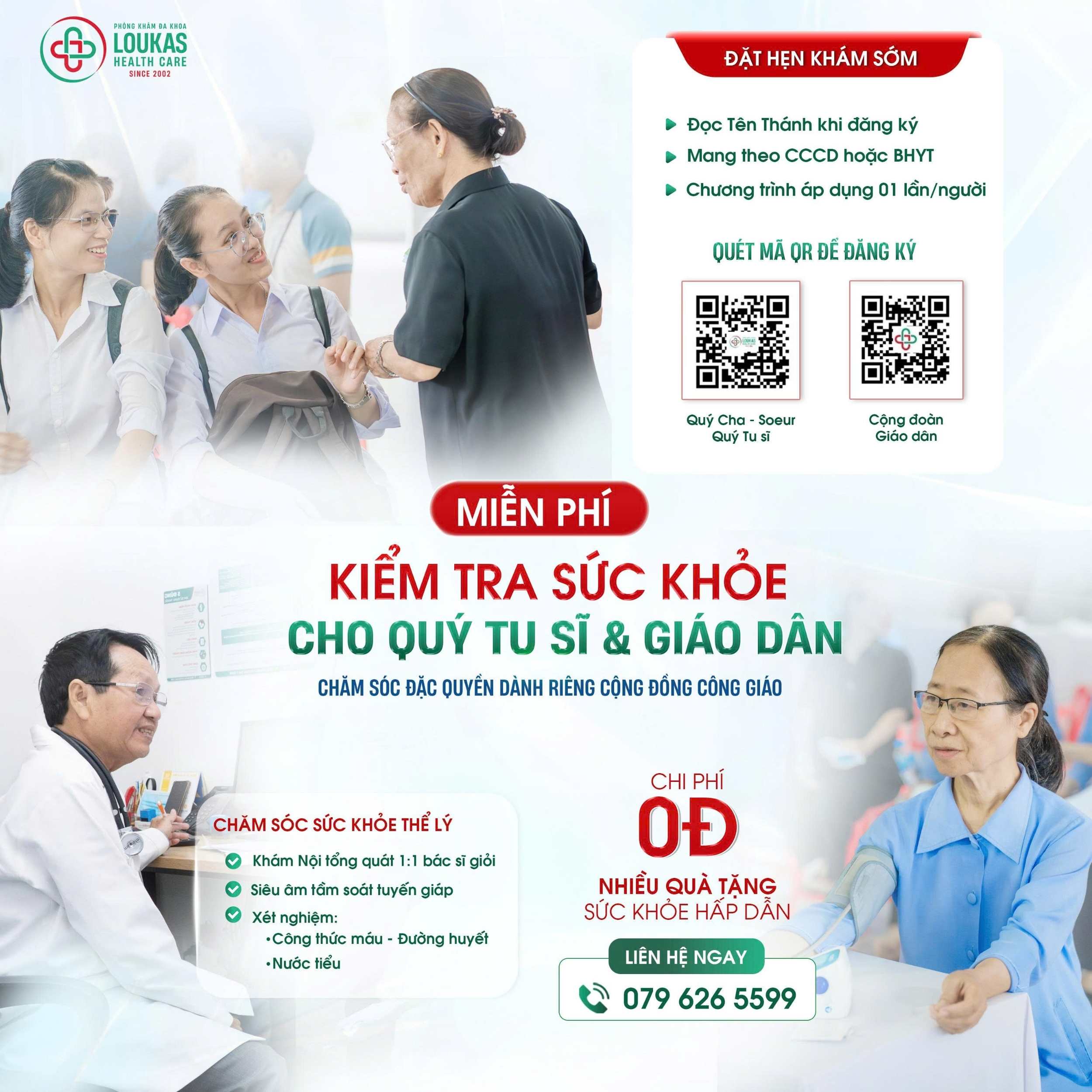 Vì thế, chương trình “SỐNG KHỎE – SỐNG ƠN GỌI” thăm khám sức khỏe MIỄN PHÍ dành cho Quý Cha – Quý Soeur, Quý Tu sĩ & Giáo dân vẫn đang âm thầm tiếp diễn, từng ngày. Qua đó, việc chăm sóc sức khỏe thể lý trở thành một hành trình đồng hành, sẻ chia và lan tỏa những giá trị nhân văn bền bỉ, như chính sứ mạng mà Phòng khám Đa khoa Loukas luôn gìn giữ, suốt hơn 2 thập kỷ qua.